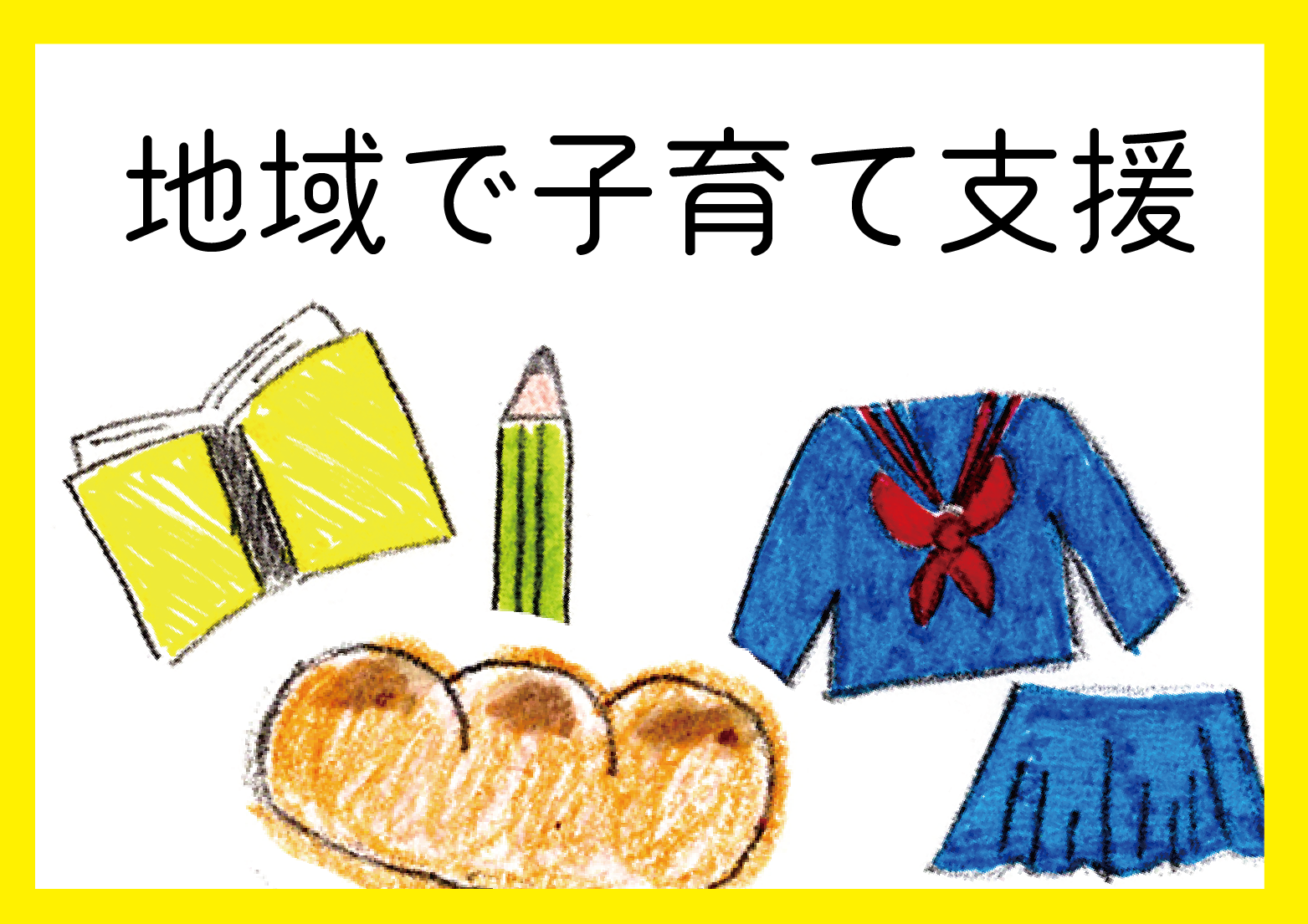 制服代・体操服代・学用品費など入学時に必要な費用、毎月の給食費、毎月の教材費を町で補い、高校卒業時まで子どもが安心して学べる、親が安心して学ばせてあげられる環境づくりを目指します。